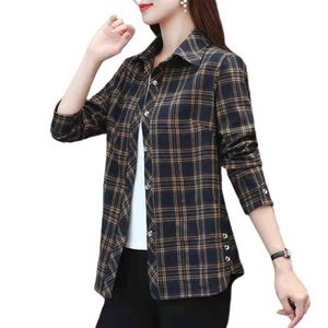 纯棉长袖衬衫女中年气质妈妈装春秋全棉开衫时尚大码宽松格子外套
