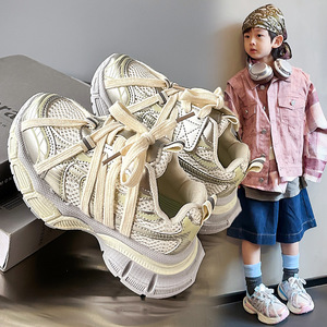 儿童老爹鞋2025新款春秋季男童做旧脏脏鞋蜘蛛侠绑带女童鞋子软底