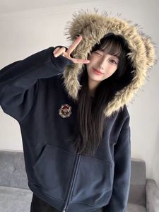 黎帮主 小熊耳朵毛领开衫外套女2025新款秋冬装休闲情侣连帽卫衣