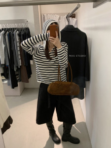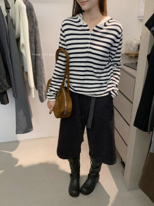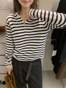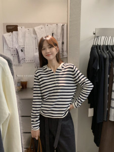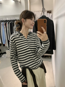 【MISS密思家】经典条纹间色暖和羊毛连帽针织衫(含50%羊毛)2257
