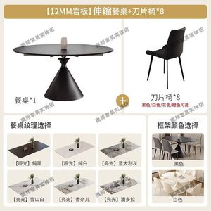 黑色旋转伸缩意式餐桌轻奢小户型方圆两用圆桌现代餐桌家用简约