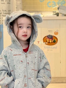 儿童加绒加厚卫衣开衫2025冬季新款女童宝宝印花长袖上衣女孩冬装