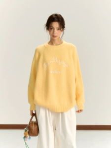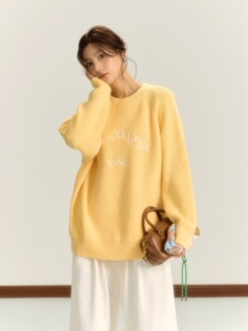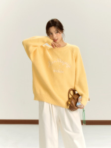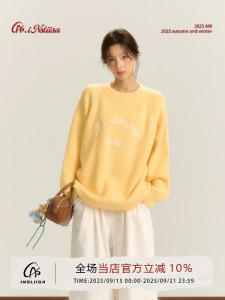 iNSLiiSA慵懒风长袖针织衫女秋季新款圆领套头小个子宽松休闲毛衣