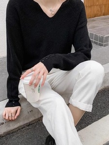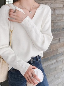温柔风V领软糯针织毛衣女秋季2025休闲宽松内搭螺纹别致打底上衣