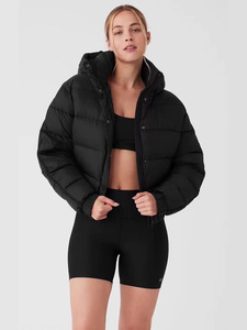 alo原标肯豆同款立领可拆卸防风防雨连帽百搭羽绒面包服外套