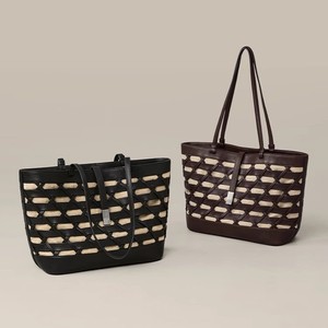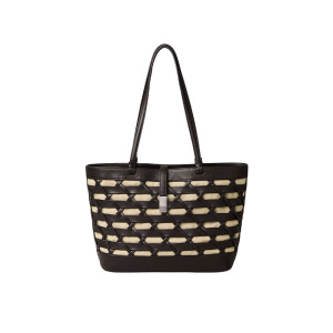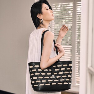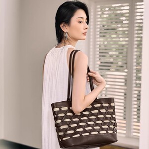 2025新款裘真植鞣牛皮编织托特包女大容量镂空设计单肩手提通勤包