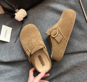 牛皮版~葡萄ma同款内增高4cm复古小金扣包头半拖鞋女懒人勃肯鞋