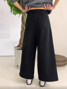 九分毛呢灰色阔腿裤女秋冬宽松直筒显瘦黑色呢子A字裤百搭休闲裤