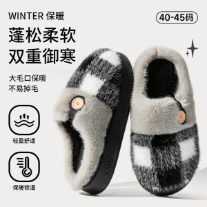 棉拖鞋男款秋冬季2025新款室内家居防滑厚底保暖加绒男士毛毛拖鞋