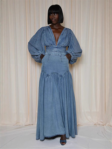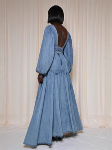 跨境独立站亚马逊ins女式欧美西部牛仔泡泡袖V领露背收腰长袖套装