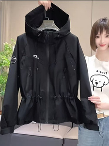 2025秋季新款气质连帽冲锋衣款式夹克宽松显瘦外套收腰休闲上衣潮