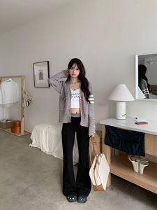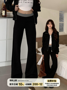 橘子树在哪儿腰头撞色休闲弹力喇叭裤女春季修身显瘦垂感拖地卫裤