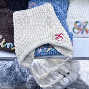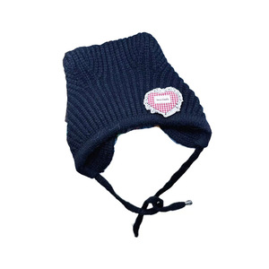 批发韩国2025年秋冬新款韩版爱心贴布针织包头帽女护耳毛线套头帽