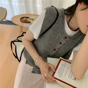 韩系设计感花线点点彩扣卷边圆领针织开衫马甲女叠穿外搭毛衣背心