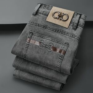 专柜品质2025秋冬厚款品质男士牛仔裤黑灰色潮牌直筒牛仔长裤子