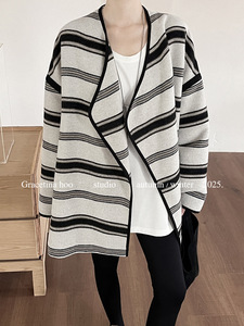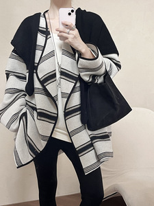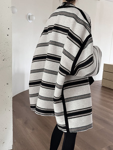 初打十三行秋冬新款法式40羊毛大衣廓形斗篷廓形条纹外套女WTA664