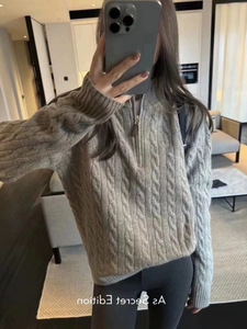 RL秋冬半拉链立领针织上衣加厚毛衣女宽松慵懒扭花羊毛衫外穿拉夫