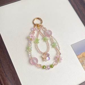 春樱琉璃奢华高级感重工粉水晶花朵串珠手机挂链钥匙包吊坠挂件