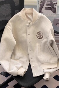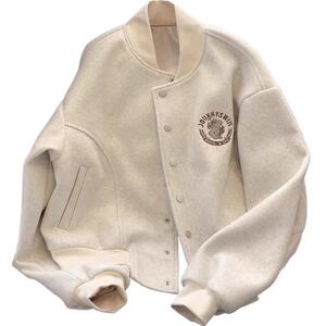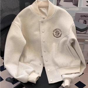 少女感满满!小香风棒球服毛呢外套女秋宽松飞行员夹克开衫上衣