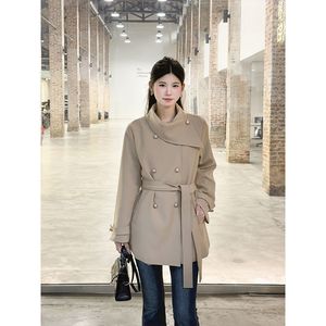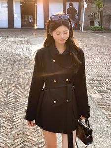 法式气质名媛风围脖设计黑色风衣外套女秋季高级感宽松英伦风大衣