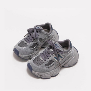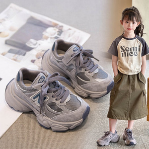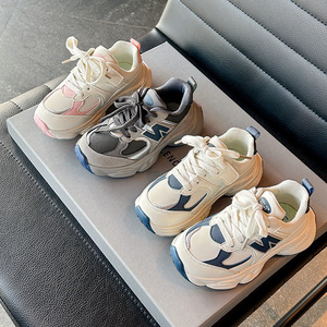 女童网面老爹鞋2025秋冬新款N字厚底运动鞋男女童时尚皮面休闲鞋