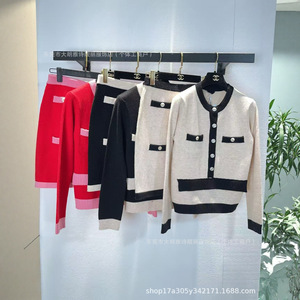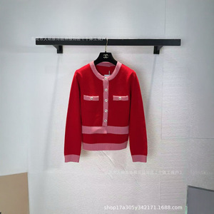 深圳南油高定25C新款小香风圆领刺绣羊毛扣针织衫女开衫短外套