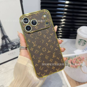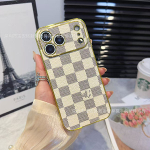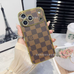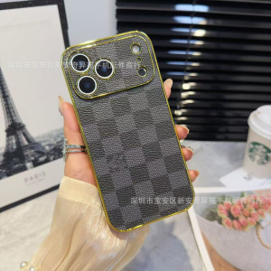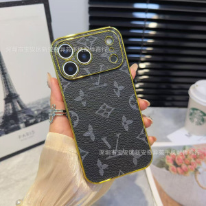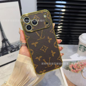 跨境爆款电镀贴皮保护套适用iPhone17Promax高级感防摔苹果手机壳