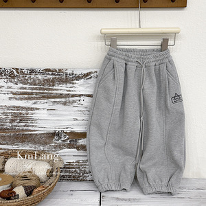 儿童卫裤2025年秋冬新款男童宽松休闲裤字母刺绣加绒加厚长裤束脚