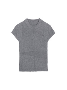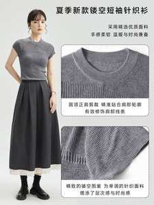 桂儿「桑蚕丝羊毛」显瘦工程师!灰色针织短袖女镂空修身上衣