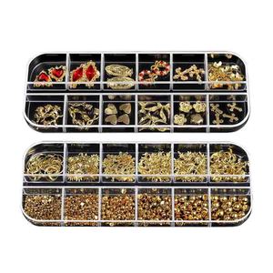 跨境爆款美甲饰品12格金属铆钉钢珠材料混搭DIY异形指甲贴片装饰