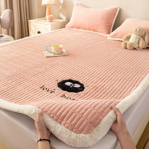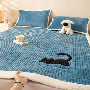 冬季加厚牛奶绒床护垫单件2025新款珊瑚法兰绒床盖夹棉床单三件套