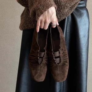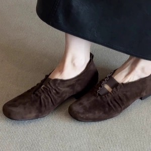 现货版~复古方头褶皱低跟乐福鞋2025新款小众时尚百搭浅口单鞋女