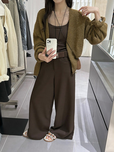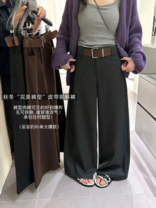 正品 高腰气质直筒毛呢阔腿裤配腰带2025秋冬新品宽松显瘦拖地裤