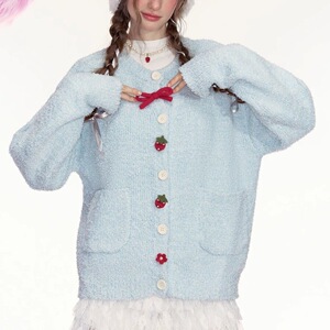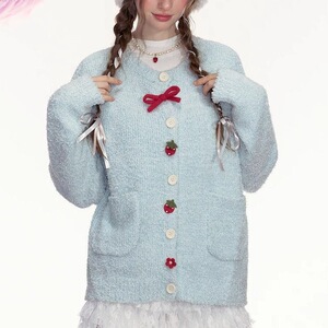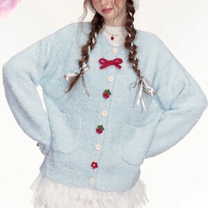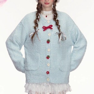 韩系甜美毛衣设计开衫针织耳边外套新款慵懒蝴蝶结宽松针织衫上衣