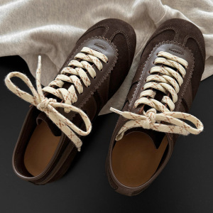 牛皮版~韩版复古软底真皮德训鞋女新款方头平底休闲运动阿甘板鞋