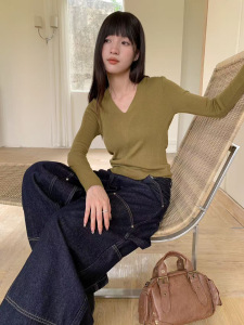 誉一新款2025秋季甜辣风领针织衫女百搭修身显瘦长袖上衣女c3090