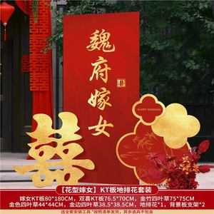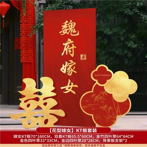 某府嫁女方出嫁迎宾牌农村结婚院子大门装饰KT板路引牌新婚房布置