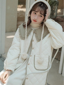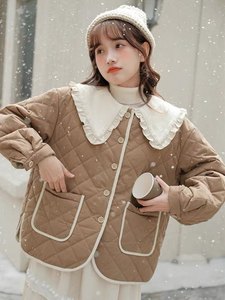 长袖棉服外套女冬季新款甜美温柔学院风加厚保暖小个子娃娃领棉衣