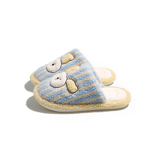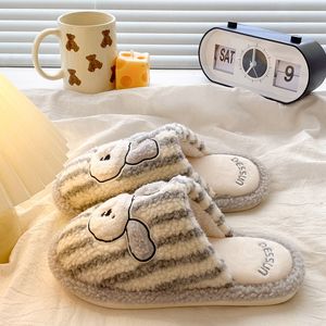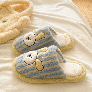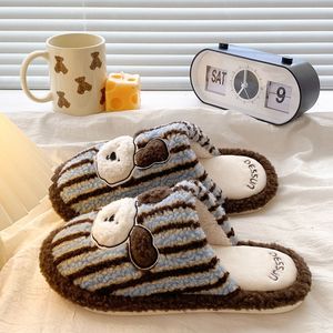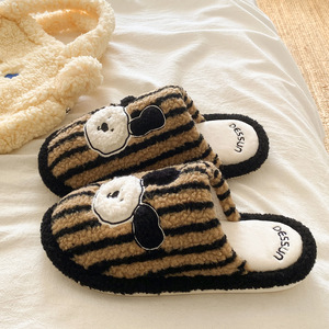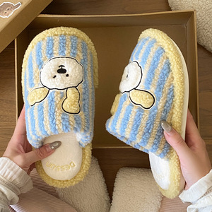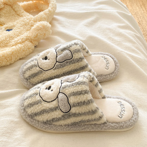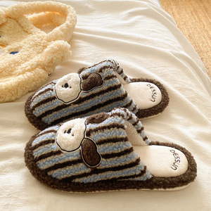 2025年韩系条纹小狗毛绒居家拖秋冬情侣卧室必备保暖耐磨舒适棉拖