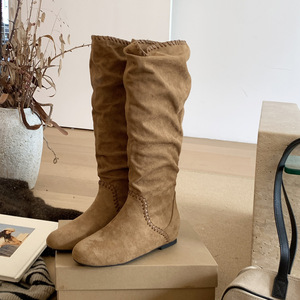 MARCO&JOYCE时尚不过膝长靴2025秋冬新款复古长筒靴褶皱堆堆靴女