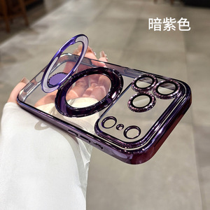 适用iPhone17PROMAX手机壳电镀TPU磁吸支架苹果17自带镜头膜防摔