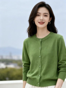 基础款~圆领羊毛纯色开衫女装0921-145G