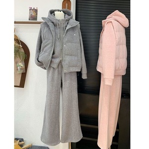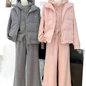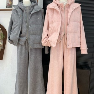 感流行运动风套装女秋冬季新款短款卫衣加厚无袖马甲三件套女