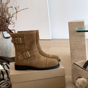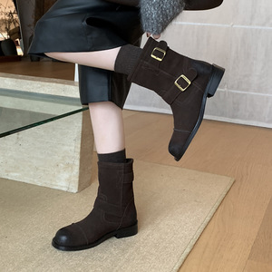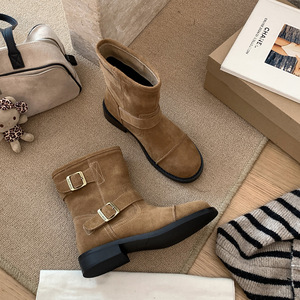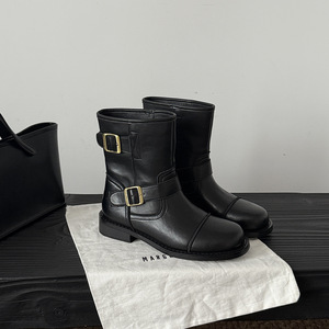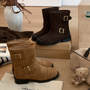 MARCO&JOYCE小众皮带扣同款厚底雪地靴2025秋季中筒骑士机车短靴
