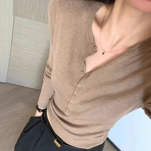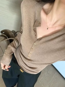 老钱风精纺羊毛针织衫女修身正肩上衣25新款秋冬v领修身内搭打底