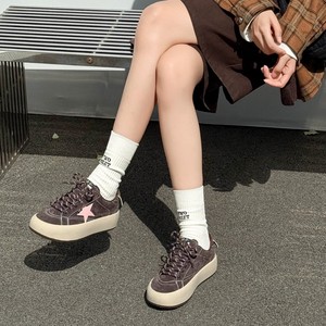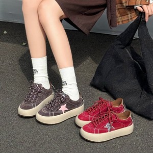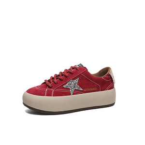 韩版真皮厚底星星板鞋女2025秋季新款舒适软底百搭运动休闲面包鞋