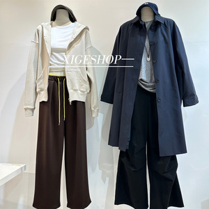 简约经典廓形风衣女高级感肌理纱线蝙蝠袖长款松弛感外套2025秋新
