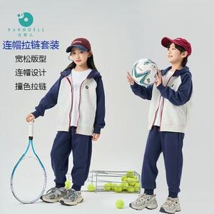 170913.拉慕儿一件代发儿童秋拼色拉链连帽外套运动休闲长裤套装