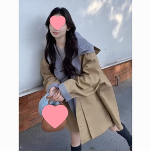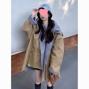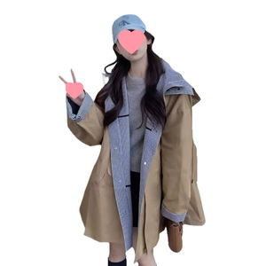 欧美风韩版格子拼接设计大衣外套女春秋款新款小个子连帽夹克风衣