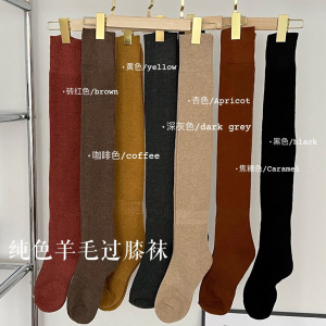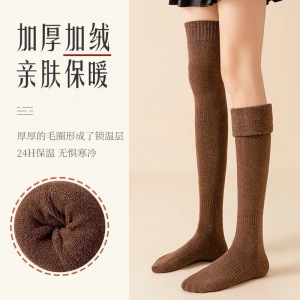 纯色过膝袜长筒袜纯色羊毛加厚毛圈保暖美腿女JK高筒大腿膝盖袜子
